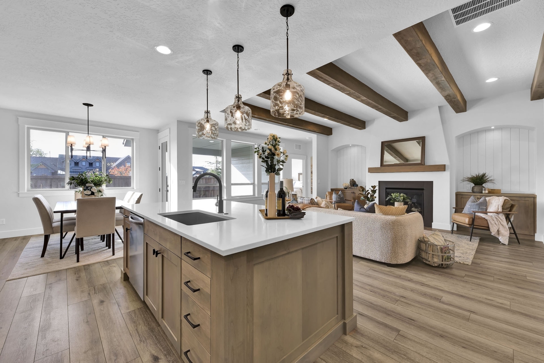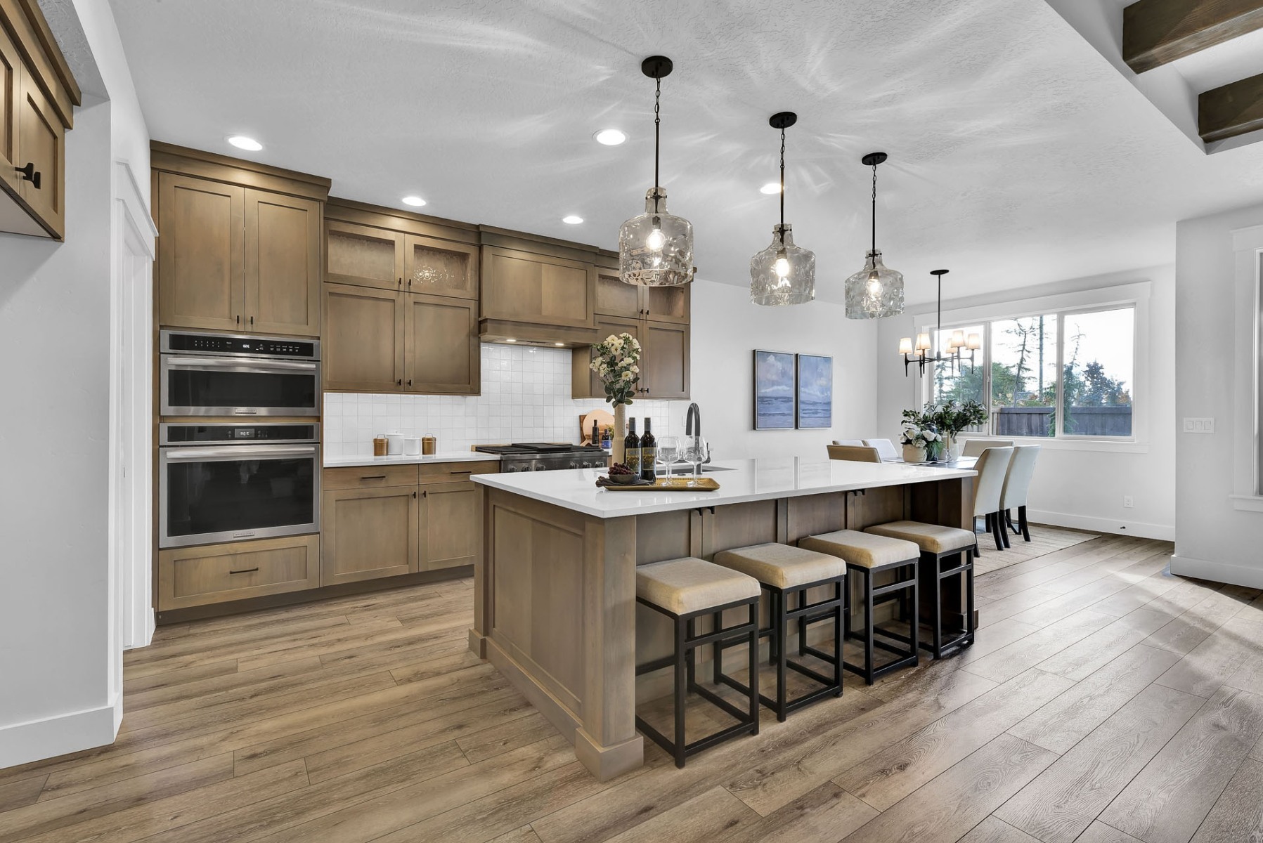 The Weston’s kitchen is the heart of the home, featuring custom cabinetryquartz countertops, and a large walk-in pantry that keeps everything organized and within reach. Whether you’re hosting or just enjoying a quiet breakfast, this space delivers both function and wow-factor.